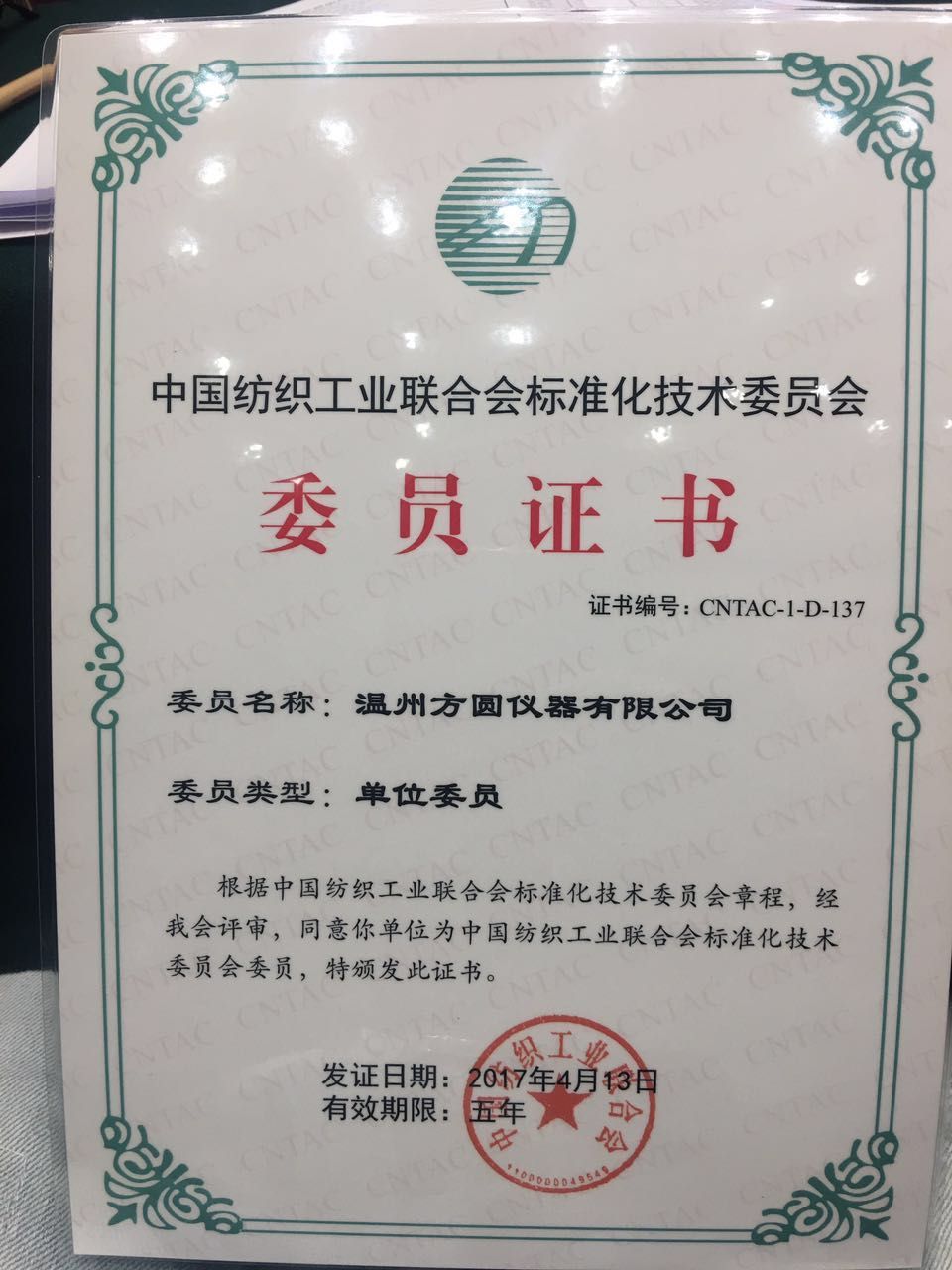 祝賀溫州方圓儀器有限公司成為中紡聯(lián)標(biāo)準(zhǔn)化技術(shù)委員會(huì)委員單位